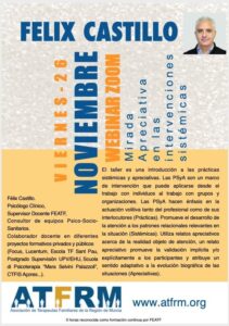 Asociación: AMTPFOSH Asociación Madrileña de Terapia de Pareja y Familia Formación: Intervención en procesos de divorcio Ponente: Fátima Gallardo Duración: 4 horas ( con breve