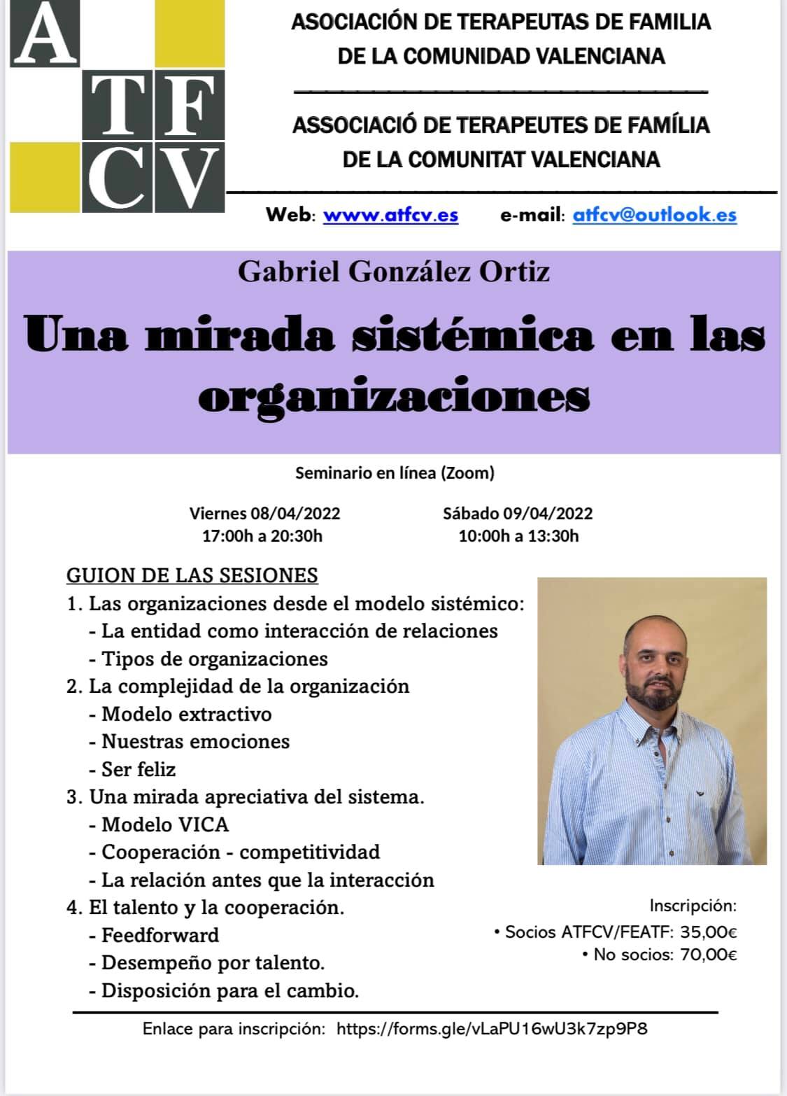 Lugar: Plataforma Zoom Precios: • Socios ATFCV/FEATF: 35,00€ • No socios: 70,00€ Organiza e informa: Asociación Valenciana Tfno.: 666 217 907 Más información: Pincha aquí Inscripciones: Pincha aquí