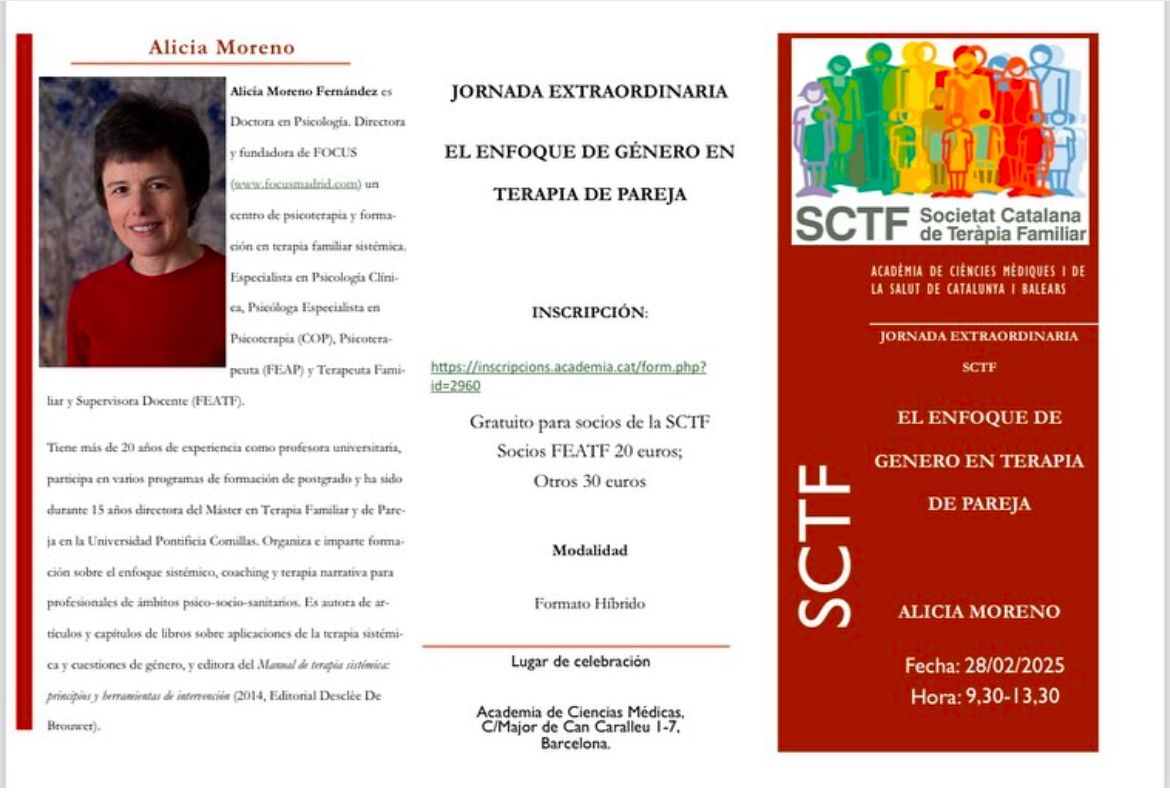 Asociación: AMTPFOSH Asociación Madrileña de Terapia de Pareja y Familia Formación: Intervención en procesos de divorcio Ponente: Fátima Gallardo Duración: 4 horas ( con breve